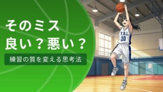 中学女子バスケで上達するために不可欠な「良い失敗(チャレンジ)」と避けるべき「悪い失敗(消極的)」の違いを徹底解説。ミスを恐れてプレーが縮こまる選手へ、具体的な判断基準と、失敗を次に活かすための思考法・切り替え術を伝授します。
